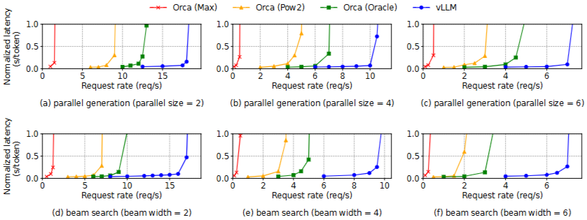 - Orca (Max): 현실적인 비교군으로 최대 길이(2048)만큼 메모리를 예약하는 방식입니다.